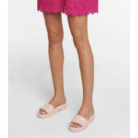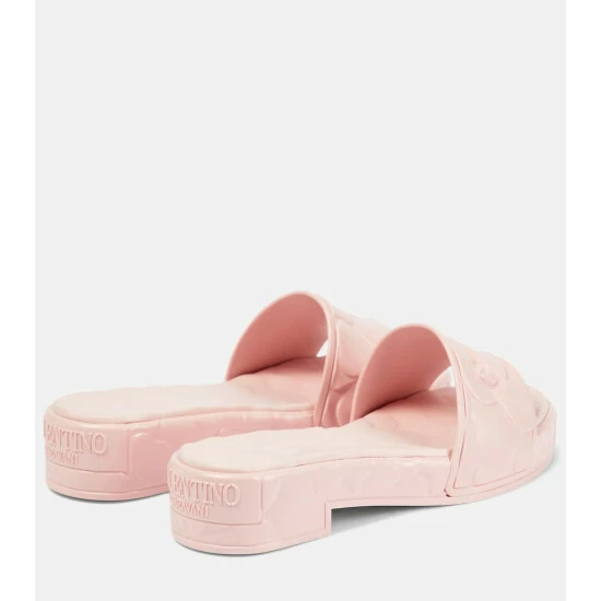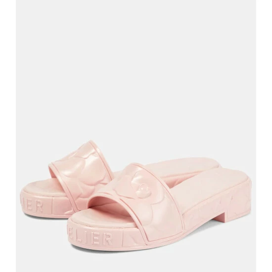 The Atelier slides from Valentino Garavani are both practical and stylish. They’re made from water-repellent rubber with carved petals, embossed lettering and slightly raised heels.