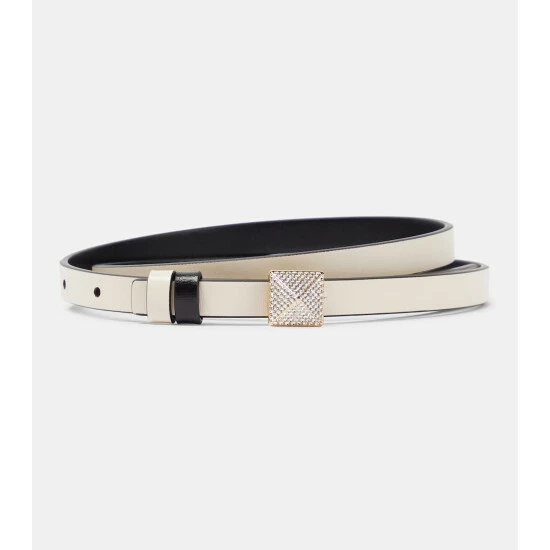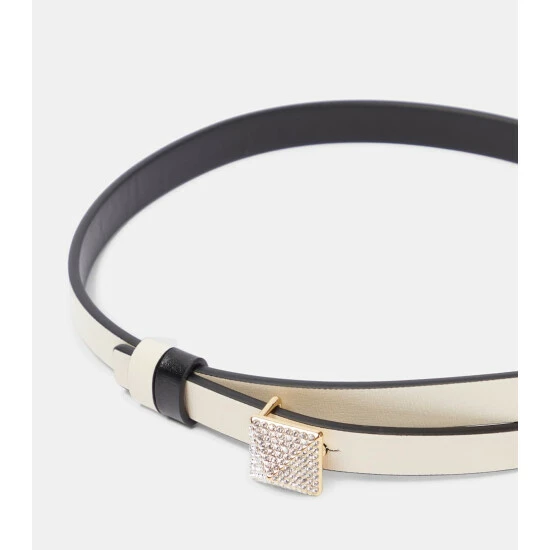 Securing with a crystal-embellished metal buckle, this belt from Valentino Garavani has a narrow silhouette and is made from polished leather.