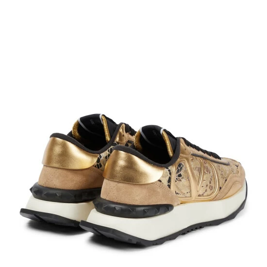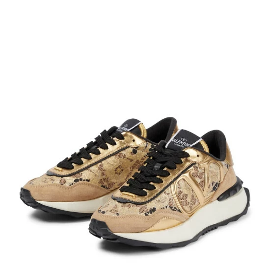 Valentino Garavani puts a romantic spin on sneakers with this Lacerunner pair. This monochrome design has lace panels and suede and leather trims, including VLogo monograms at the lateral sides.