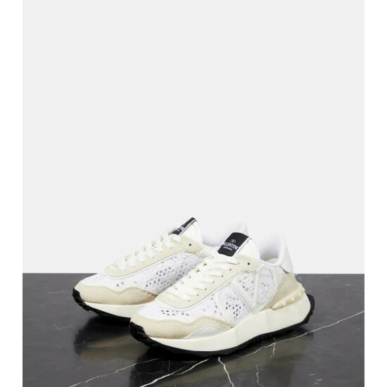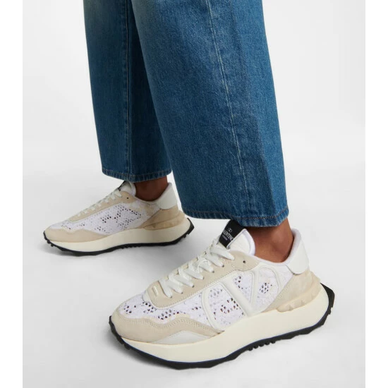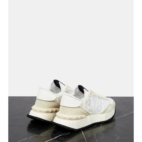 Valentino Garavani puts a romantic spin on sneakers with this beige-toned Lacerunner pair. They have lace panels and suede and leather trims, including VLogo monograms at the lateral sides.