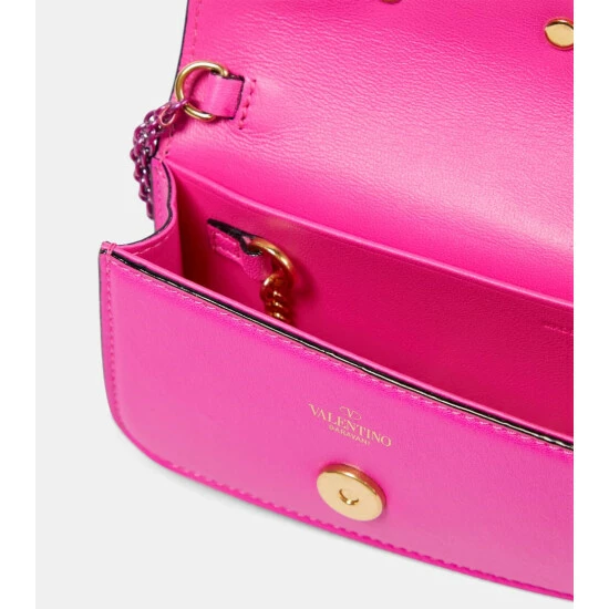 Valentino Garavani’s Micro edition of the Locò shoulder bag is made in Italy from calfskin and has a metallic VLogo Signature detail. Both the sliding chain strap and the handle are detachable for endless versatility.