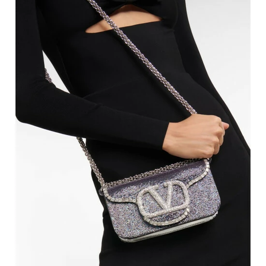 Set to become Valentino Garavani’s new “It” bag, the Locò is a ’90s-inspired baguette style. Made from leather with all-over beading, this Small design has a silver-tone chain strap and VLogo hardware embellished with Swarovski® crystals.