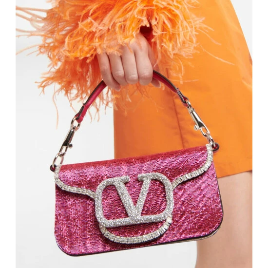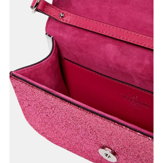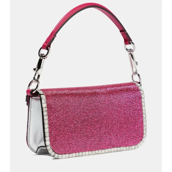 Slated to become Valentino Garavani’s new “It” bag, the Locò is a ’90s-inspired baguette style. Made from metallic leather, this Small design is embellished with Swarovski® crystals all-over and accented with VLogo hardware.