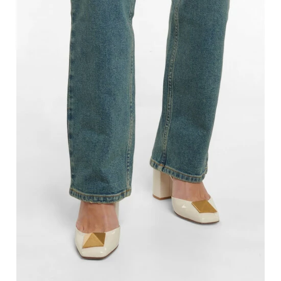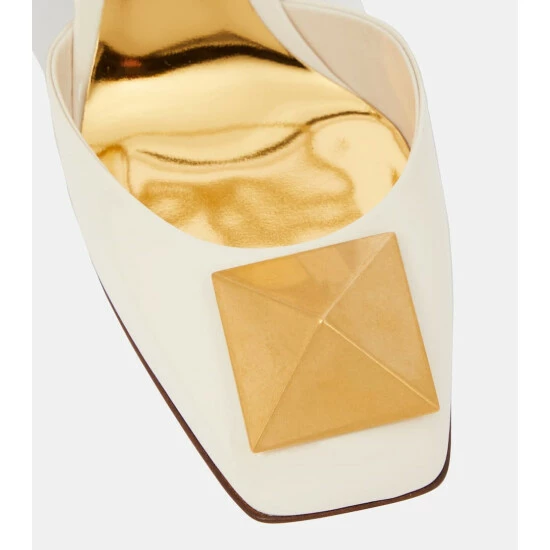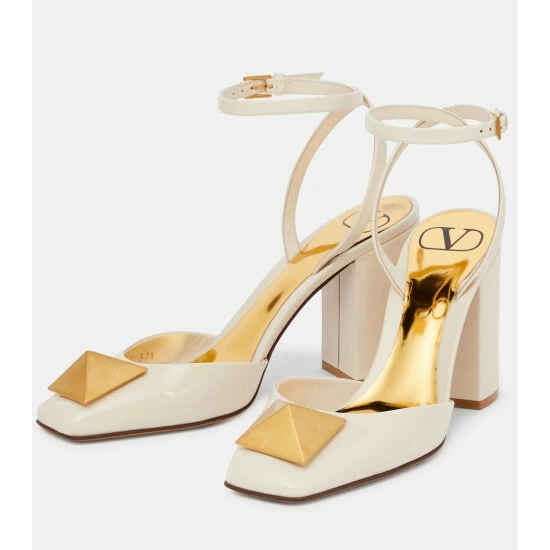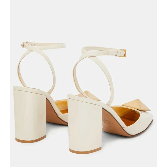 Valentino Garavani’s signature One Stud detailing takes center stage on these pumps. They are made in Italy from white patent leather and set atop 90mm block heels.