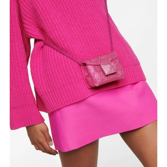 The One Stud Mini bag from Valentino Garavani features signature front closure with a hardware stud in a large silhouette and tonal finish. It is made from nappa leather and embellished all-over with Swarovski® crystals.