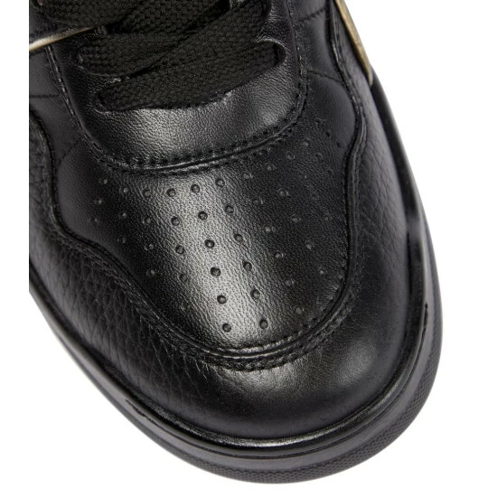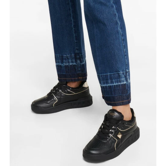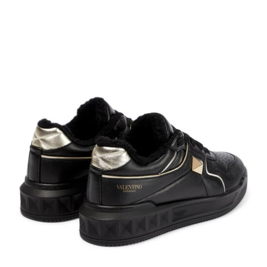 Smoothly slip into these low-top sneakers by Valentino Garavani. They’re made from supple black lamb leather and carry the classic platinum-plated stud, as well as other golden detailing.