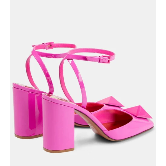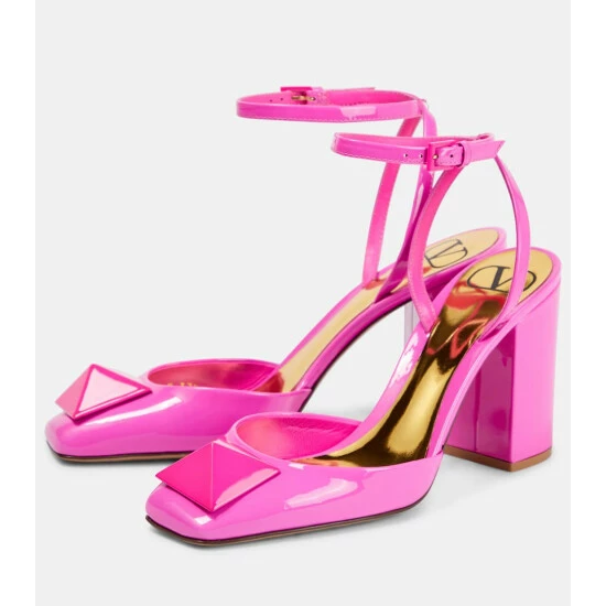 Valentino Garavani’s signature One Stud detailing takes center stage on these pumps. Made in Italy from patent leather in the bold Pink PP shade, they have metallic insoles and high block heels.