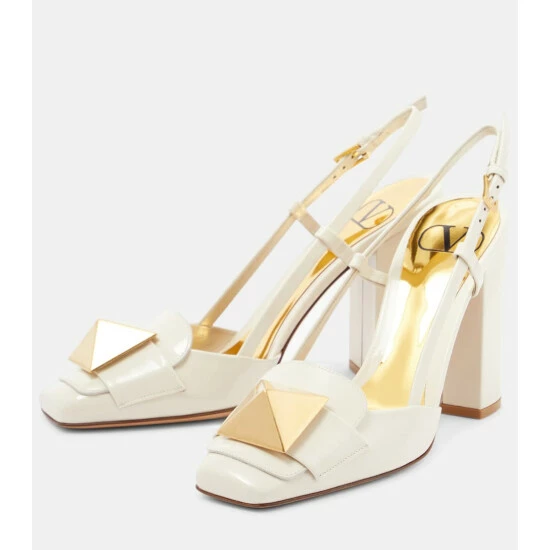 Achieve effortless style with the One Stud slingback pumps from Valentino Garavani. Crafted from white patent leather, this iteration has a squared toe, and is decorated with the label’s famed One Stud motif.