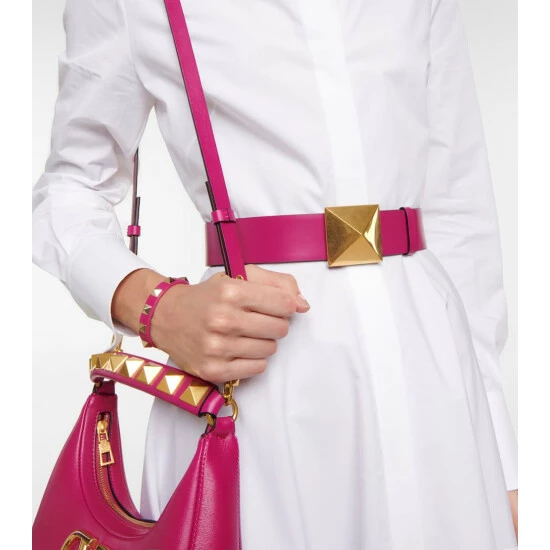 Valentino Garavani’s One Stud belt is embellished with the brand’s famed maxi stud in gold-toned hardware. This reversible design is made from smooth leather in pink and brown.