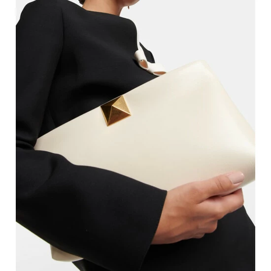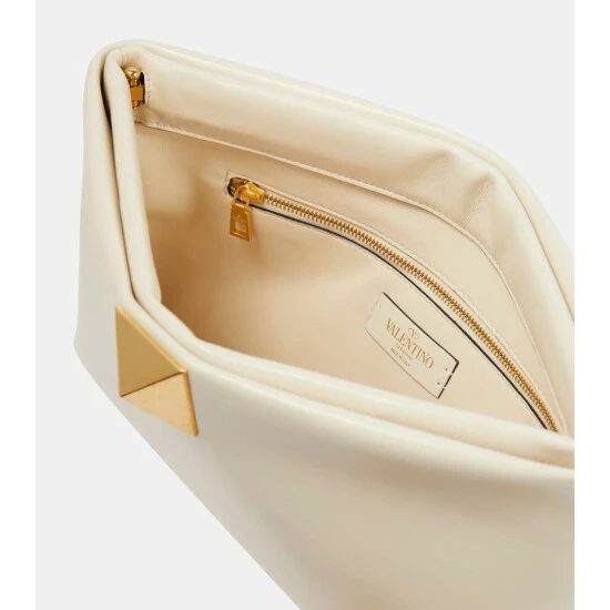 Keep this Valentino Garavani Small leather clutch within arm’s reach for your daily dose of luxury. Those in the know will instantly recognize the brand’s iconic pyramidal One Stud in gold-toned hardware.