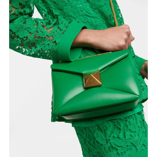 Valentino Garavani’s One Stud Small shoulder bag is named for the maxi Rockstud embellishment on its envelope-style flap. The padded design is made from green nappa leather and finished with a gold-tone chain strap.