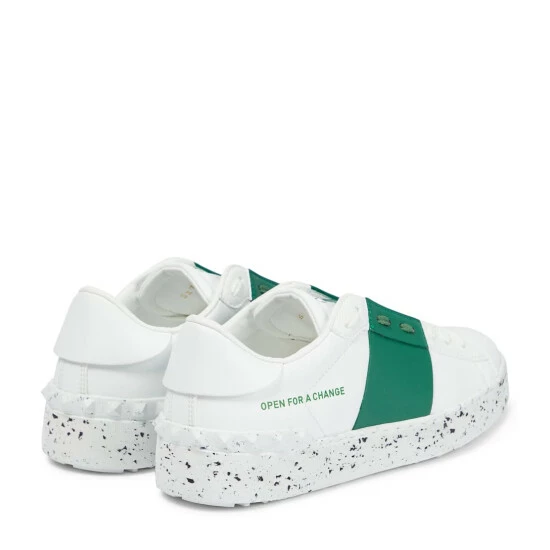 Refresh your sneaker edit with these white Valentino Garavani sneakers. Crafted in Italy with smooth recycled material uppers, this pair features a contrast-colored green stripe and is set on a speckled, chunky rubber sole.