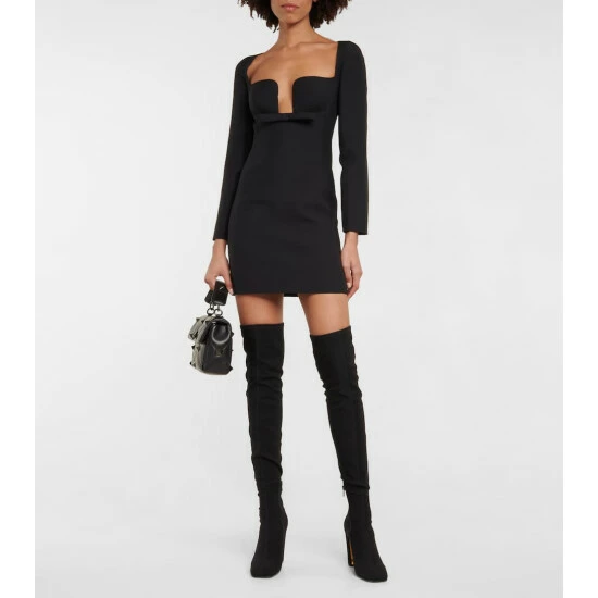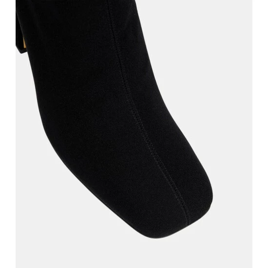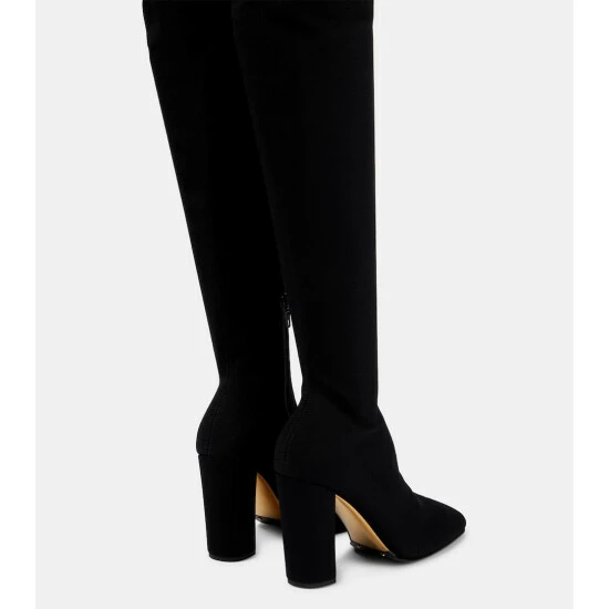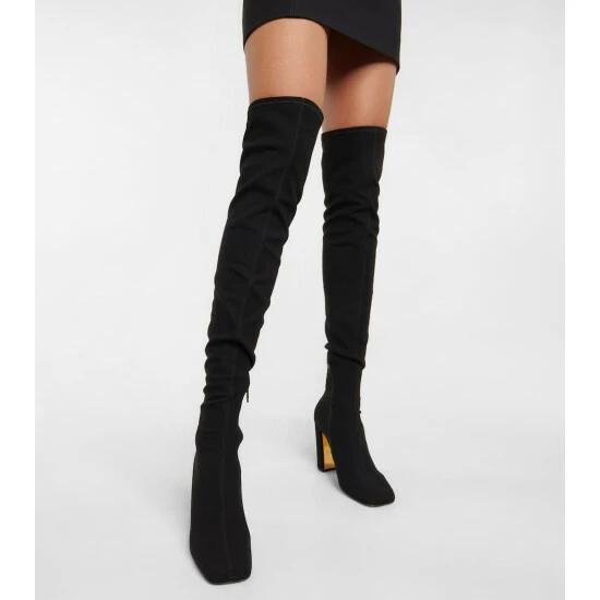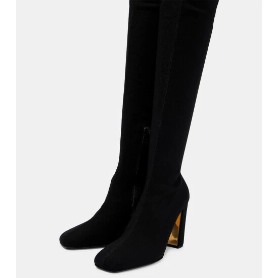 These over-the-knee boots with golden metallic soles and block heels exude timeless Valentino Garavani style. Made in Italy from stretchy technical fabric creating a streamlined silhouette punctuated with a tonal embroidered logo.