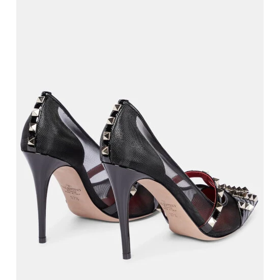 Make a statement wherever you go in Valentino Garavani’s Rockstud Alcove pumps. Made from an alluring combination of patent leather and mesh, the black design features the platinum-plated pyramid studs that have become synonymous with the brand.