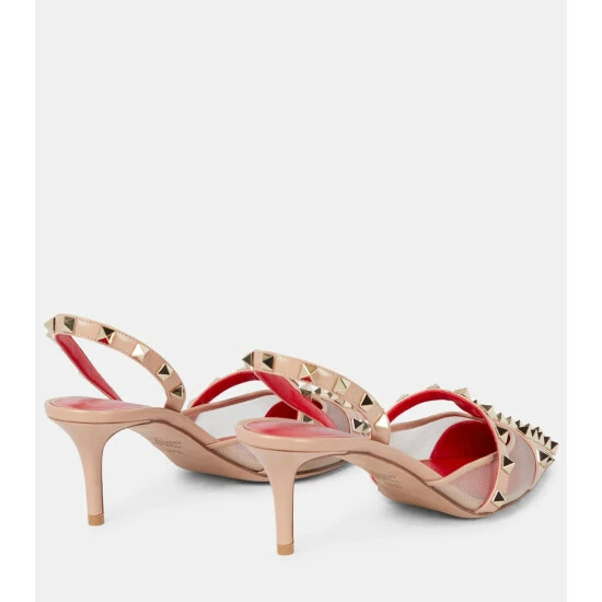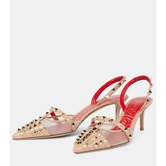 Make a statement wherever you go in Valentino Garavani’s Rockstud Alcove slingback pumps. Made from an alluring combination of beige leather and mesh, they feature the platinum-plated pyramid studs that have become synonymous with the brand.
