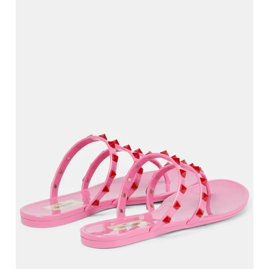 Valentino Garavani refreshes its iconic Rockstud detailing for the season with these jelly sandals. The pink thong-toe flats are punctuated with colored studs along the straps for a fun finish.