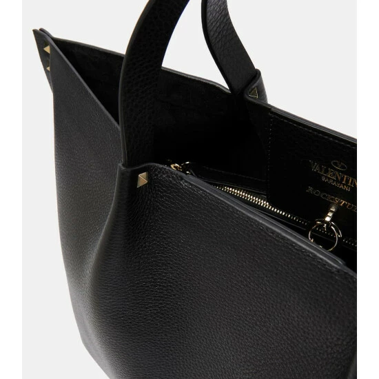 Find a place for everything you need on-the-go in the Rockstud large leather tote bag from Valentino Garavani. It’s made from textured black leather and embellished with platinum-plated studs along the sides.