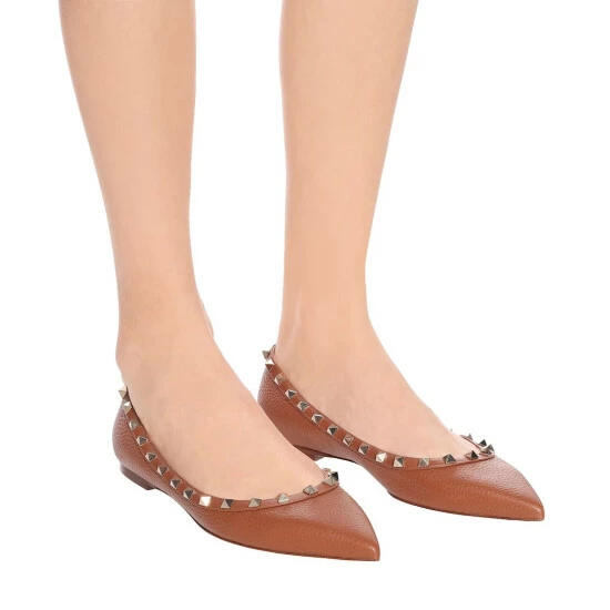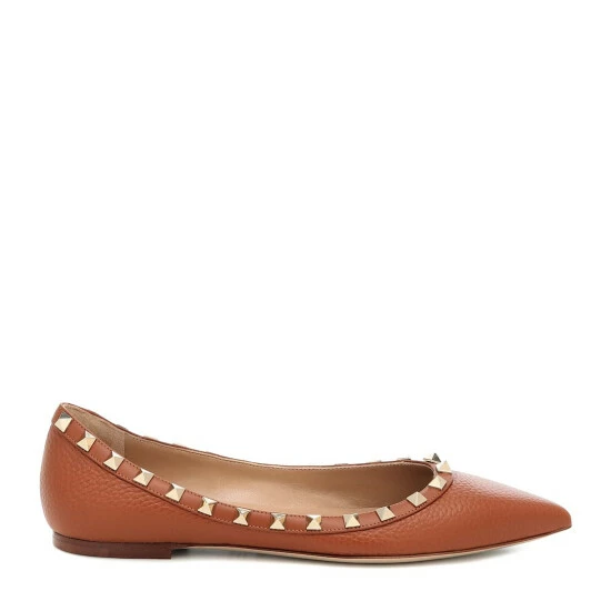 We love how Valentino Garavani’s Rockstud ballet flats are equal parts elegant and edgy. Crafted in Italy from grained calf leather in timeless tan, this pointed pair is punctuated by the house’s signature pyramidal studs in gleaming golden hardware. Wear yours from day to night with everything from indigo denim to printed dresses.