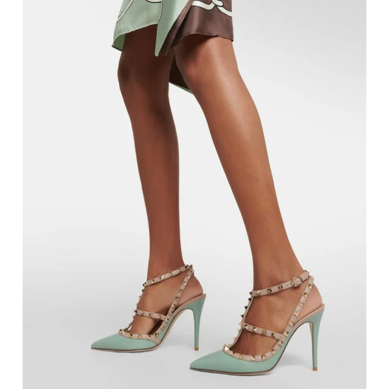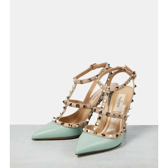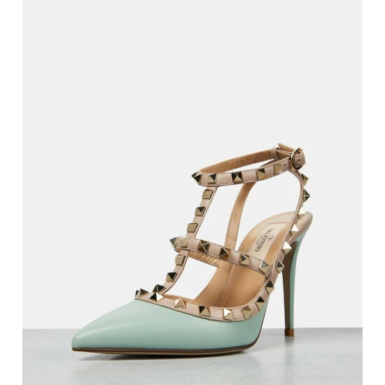 Valentino Garavani looked to ancient architecture to create the now-iconic Rockstud embellishments. The house’s artisanship is spotlighted by these lambskin pumps, featuring a caged pointed-toe silhouette with contrasting borders.