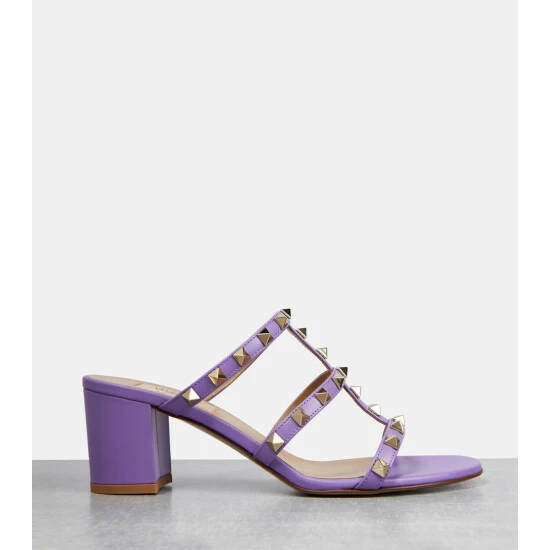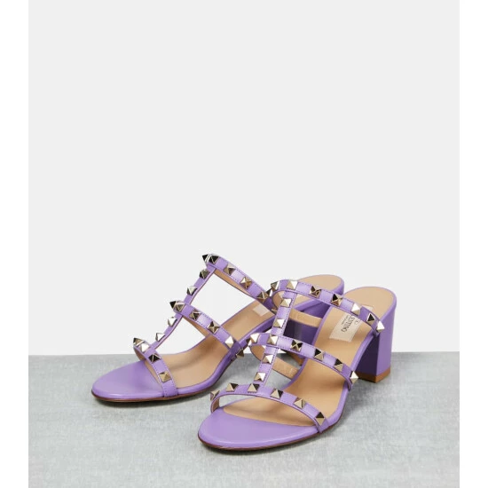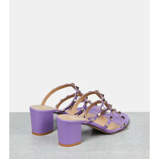 Valentino Garavani looked to ancient architecture to create the now-iconic Rockstud embellishments. The motif embellishes the caged straps of these lambskin sandals, structured with open almond toes and block heels.