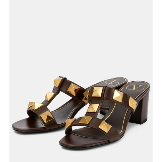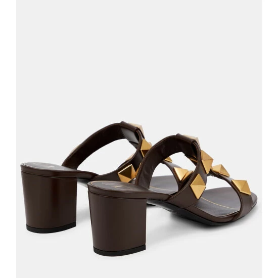 Set on comfortable block heels, these Valentino Garavani sandals are made from straps of deep brown leather that elegantly cage the foot and are decorated with signature gold-toned Rockstuds.