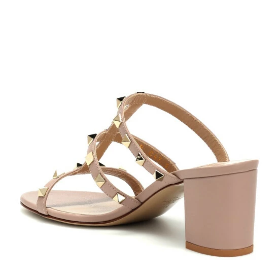 Opt for an instantly recognizable look in these Valentino Garavani Rockstud leather sandals, which work an effortless mule design. The pair has been crafted in the label’s native Italy from supple leather, with its caged silhouette punctuated with the label’s signature pyramid studs. Let the “poudre” pink hue complement pastel-toned ensembles.