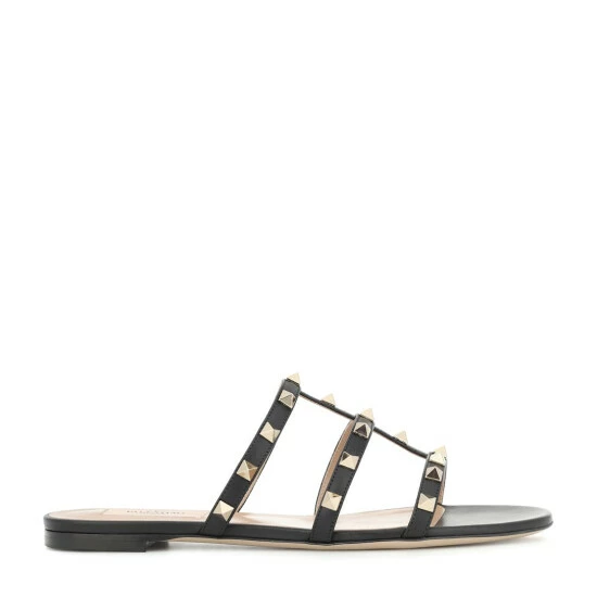Embrace the fuss-free slide silhouette this season with Valentino Garavani’s Italian-made Rockstud leather sandals. Presented in black leather for easy styling, they work a caged design, which is uplifted with gold-toned pyramid stud embellishments. Slip yours on with sunshine-ready ensembles.