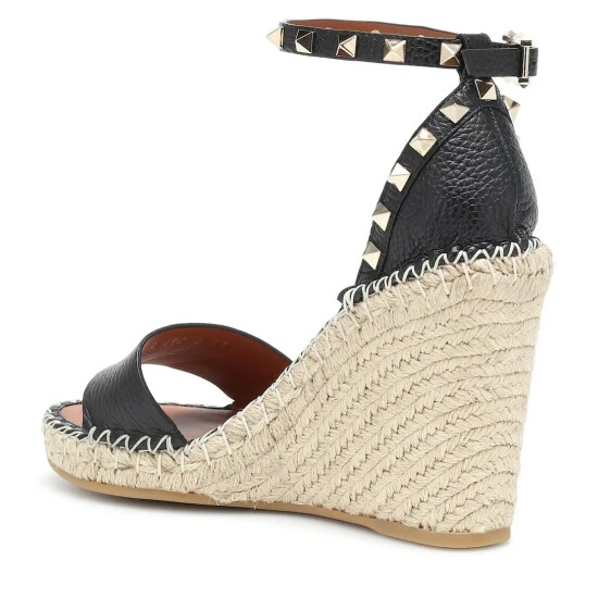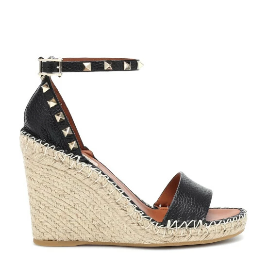 Valentino Garavani’s signature Rockstuds add instant appeal to any accessory, and on a wedge espadrille these embellishments look especially fresh. Crafted in Italy from black leather, this statement summer style sits atop a woven wedge platform and features a chic banded toe and ankle. Style with jeans and seasonal stripes for a new-season take on warm weather dressing.