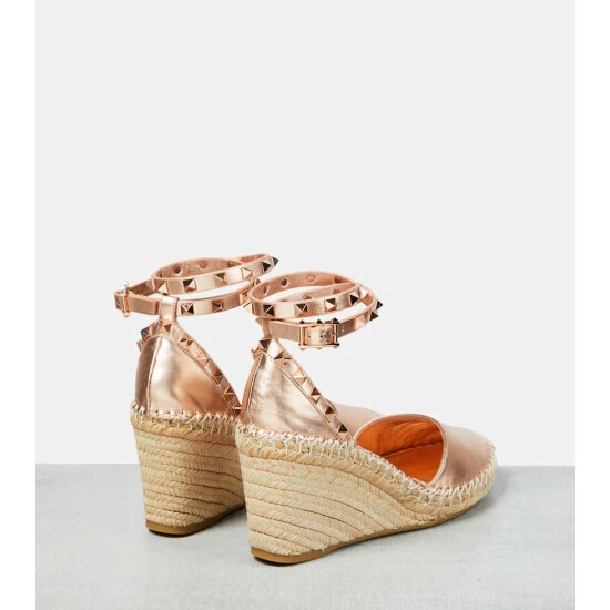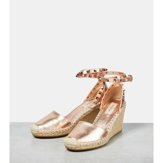 Valentino Garavani’s signature studs adorn these wedge espadrille sandals. Crafted in Italy from grained leather, this statement style sits atop a woven wedge platform and features an ankle strap for comfort.