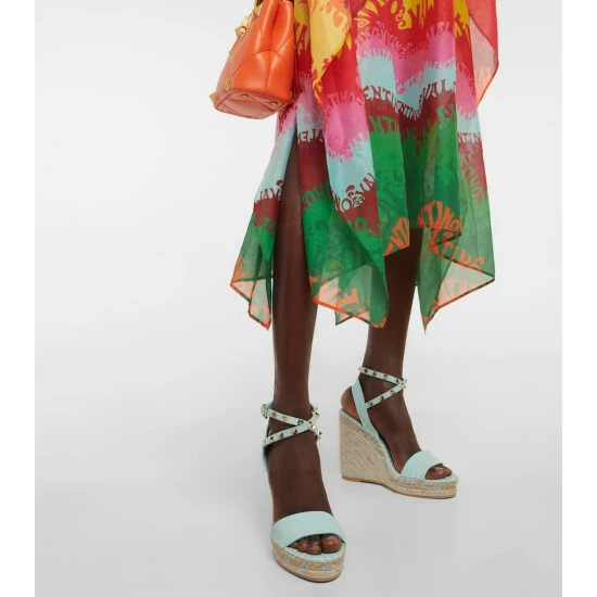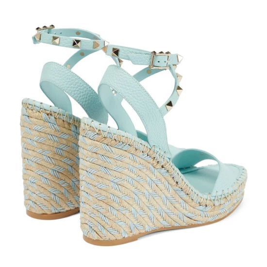 The Rockstud sandals from Valentino Garavani are equal parts edgy and romantic. Made from light blue leather, they’re set atop rope wedges trimmed with silk detailing and feature iconic pyramidal studs on the straps.