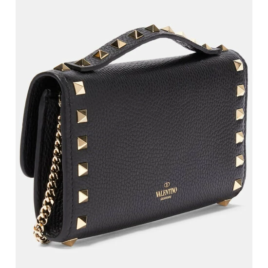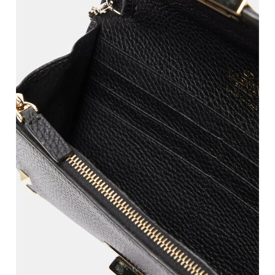Valentino Garavani proves there’s no compromise on style necessary with grab-and-go accessories like this Mini wallet on chain. Expertly made from grainy black leather, it’s finished with iconic, gold-toned Rockstuds and a detachable chain strap.