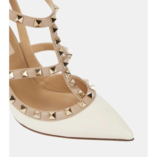 Valentino Garavani’s artisanal approach to footwear is not confined to its way with leather; it shows in the detailing of icons such as the Rockstud design, too. The pyramidal studs are made from brass, and then galvanized to achieve their striking finish. Once hand-applied onto these ivory-white patent leather pumps, they radiate the inimitable sophistication the label is coveted for.