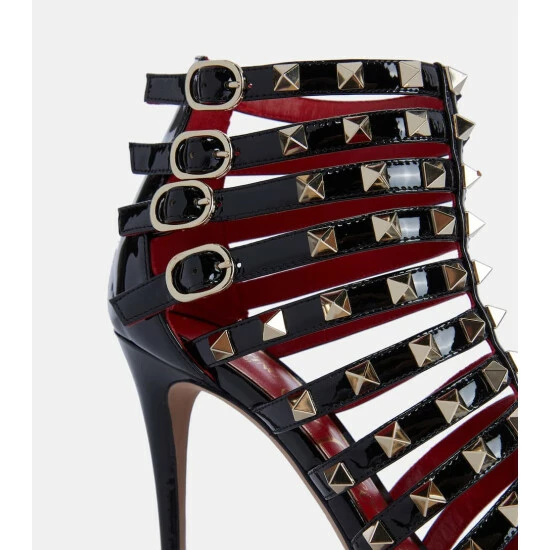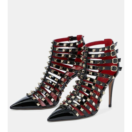 These black Rockstud pumps from Valentino Garavani are equal parts elegant and edgy. Made in Italy from patent leather, they have a point-toe silhouette and multiple buckled straps that are embellished with hand-applied, pointed studs.