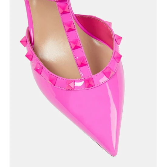 Valentino Garavani’s artisanal approach to footwear is not confined to its way with leather; it shows in the detailing of icons such as the Rockstud design, too. The pyramidal studs are made from brass, and then galvanized to achieve their striking finish. Once hand-applied onto these Pink PP patent leather pumps, they radiate the inimitable sophistication the label is coveted for.