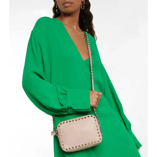 Downsize your tote to this practical crossbody bag from Valentino Garavani. Blush-hued calf leather finished with the label’s iconic Rockstud hardware makes for a modern and edgy fusion. Wear it next to bright colours and monochrome ensembles alike.