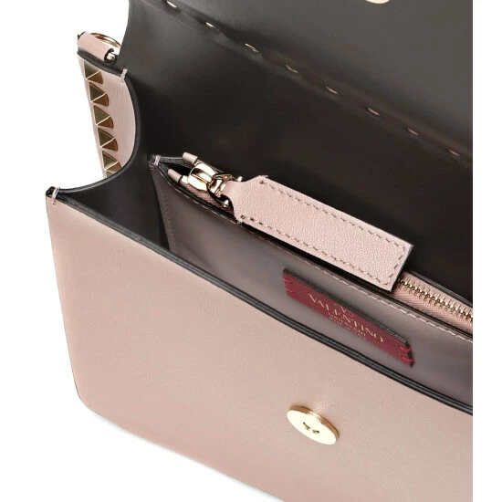 Punctuate new season ensembles with Valentino Garavani’s enviable Rockstud line, like this crossbody bag for Pre-Fall 2019. The design has been crafted in Italy from textured leather in a timeless “Poudre” beige, and is embellished with the label’s iconic pyramidal studs in platinum-toned hardware. Style yours with suiting separates to lend polished looks elegant edge.