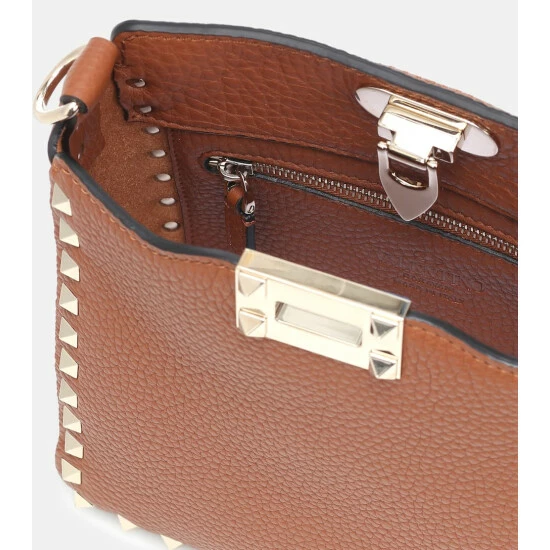 Invest in a modern day classic with this brown Rockstud Small shoulder bag from Valentino Garavani. Made in Italy from grained calf leather, it’s framed with the label’s signature pyramid-shaped studs finished in a gleaming gold tone. The satchel silhouette makes it an ideal option for the woman who’s always on the go.
