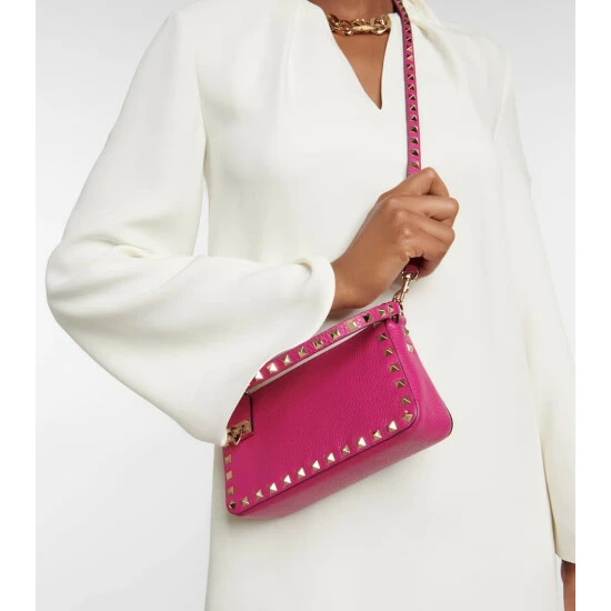 This baguette bag from Valentino Garavani has a long strap and a top handle, allowing you to carry it in multiple ways. Made in Italy from pink leather, it’s embellished with the label’s signature Rockstuds.