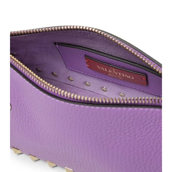 This baguette bag from Valentino Garavani has a long strap and a top handle, allowing you to carry it in multiple ways. Made in Italy from purple calf leather, it’s embellished with the label’s signature Rockstuds.