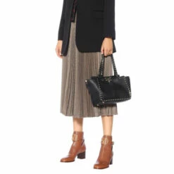 Platinum-plated hardware, hand-painted edges, tonal stitching – there are plenty of things to love about Valentino Garavani’s Rockstud Small tote in black leather. This piece is named for its now-iconic hardware, which is inspired by Roman architecture and designed with the utmost attention to detail: Measured and applied by hand, and galvanized for an enduringly glossy finish.