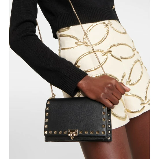 Valentino Garavani proves there’s no compromise on style necessary with grab-and-go accessories like the Rockstud Small wallet on chain. Crafted from black grained leather, the compact design is finished with the brand’s iconic pyramidal studs.