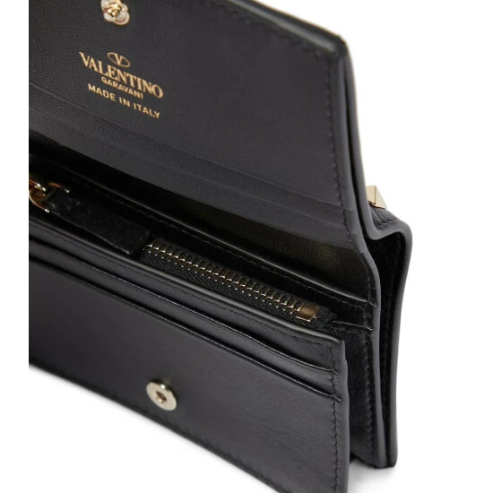 This compact wallet from Valentino Garavani is made from supple calf leather and accented with platinum-plated Rockstud embellishments for instant recognition. It comes with multiple slots and a zipped coin pocket.
