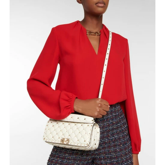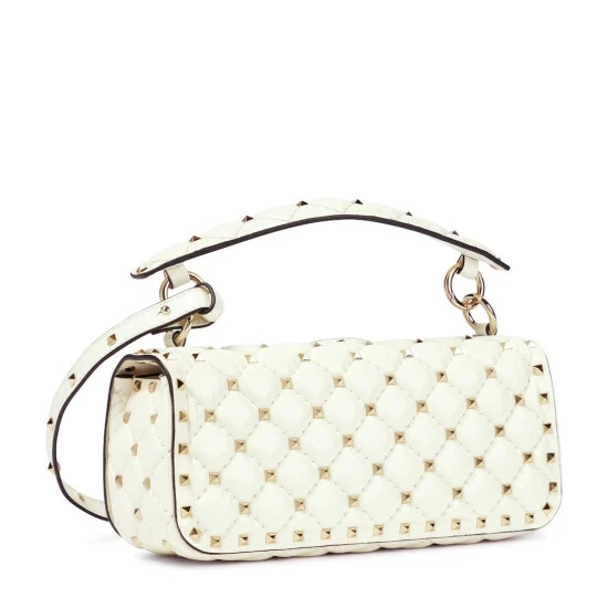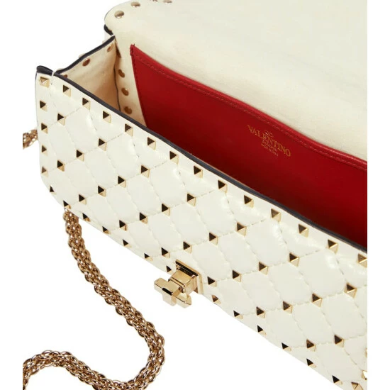 Valentino Garavani reworks the coveted Rockstud Spike shoulder bag in sumptuous nappa leather. Crafted in Italy, this ivory white piece is adorned with the label’s signature platinum-toned stud embellishments and a chain shoulder strap.