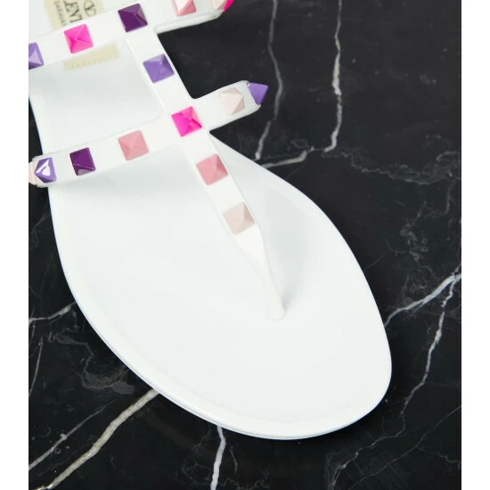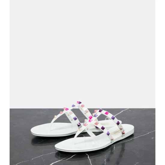 Valentino Garavani’s Rockstud thong sandals have been crafted in Italy from glossy pink rubber. The strappy design provides support, while the brand’s signature pyramid-shaped studs bring a tough-luxe finish.