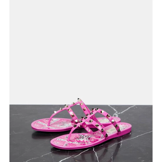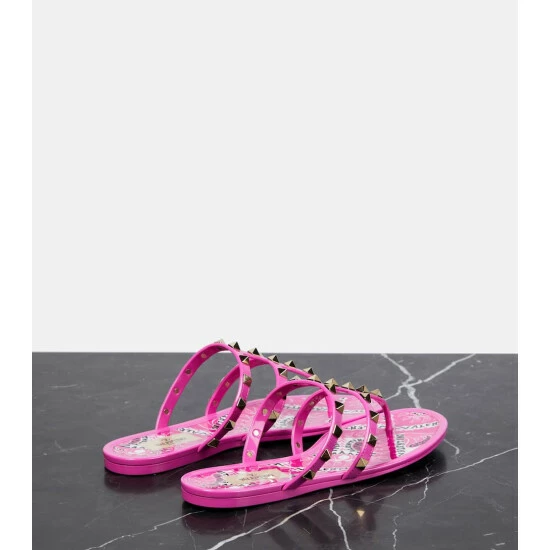 Valentino Garavani’s Rockstud thong sandals have been crafted in Italy from glossy rubber. The strappy design provides support, while the multicolored pyramid-shaped studs bring a tough-luxe finish.