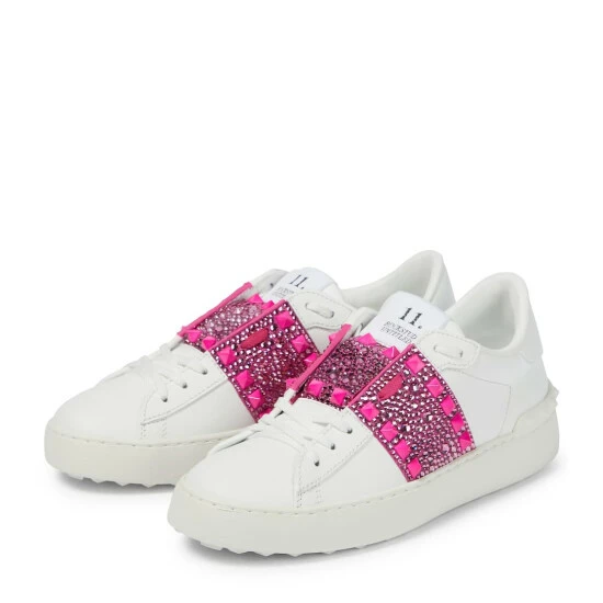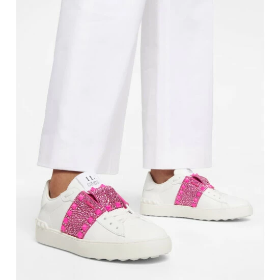 Stand out from the crowd with the Rockstud Untitled sneakers from Valentino Garavani. Made in Italy from leather, this lace-up style is embellished with platinum-plated studs and rhinestones on a eye-catching contrast tone.