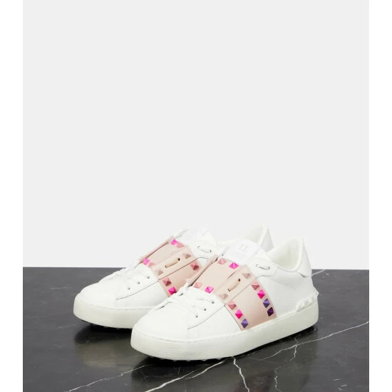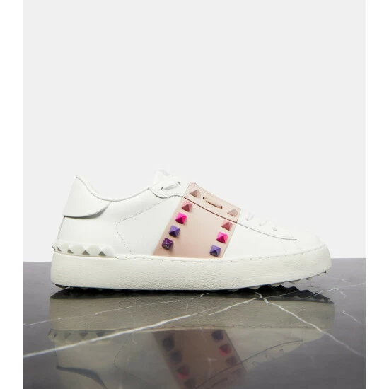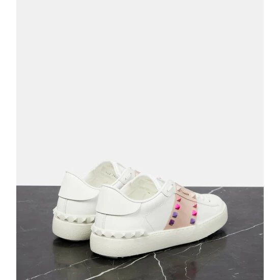 Refresh your sneaker edit with Valentino Garavani’s Rockstud Untitled sneakers, crafted in Italy from smooth calf leather. The lace-up low-tops are embellished with the label’s signature ruthenium pyramid studs, creating a tough-luxe impression.