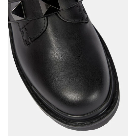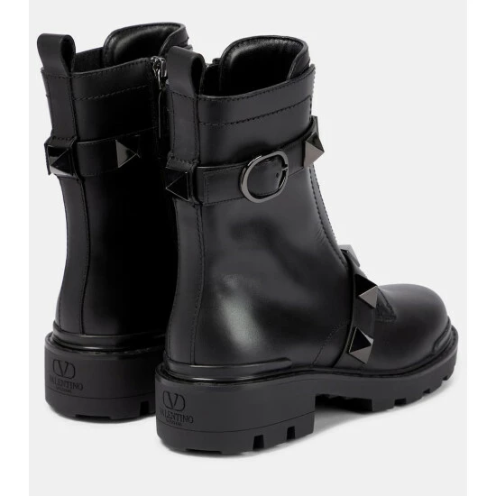 These ankle boots from Valentino Garavani are embellished with the label’s silver-tone Roman Studs. Made from black leather, they’re set on lugged rubber soles and feature both buckle and zip fastenings.