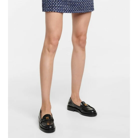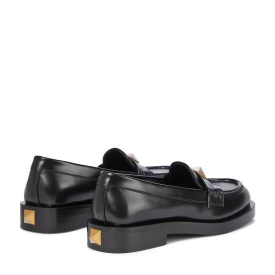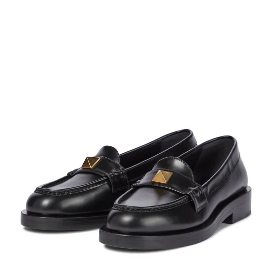 These black loafers from Valentino Garavani are versatile shoes that will go with every outfit, every day of the week. Made in Italy from polished calf leather, they have a classic penny-loafer silhouette, only they’re punctuated with golden Roman Studs at the straps and heels.