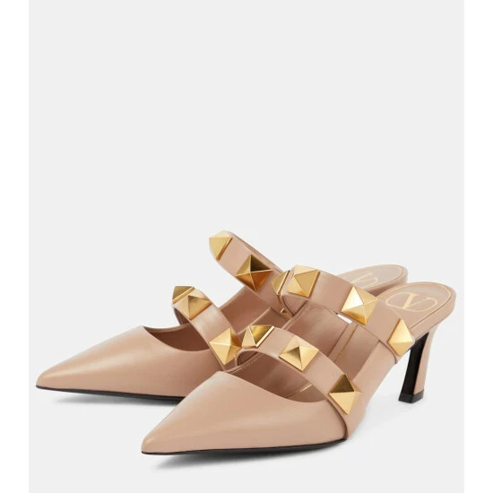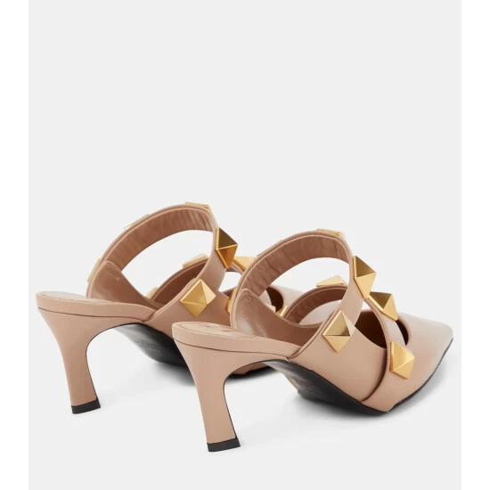 These Roman Stud mules feature strapped uppers, detailed with an exaggerated interpretation of Valentino Garavani’s pyramid hardware. This slip-on pair is made in Italy from lambskin and set upon 65mm heels.
